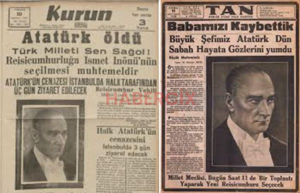 Akşam “Bütün memleket matem içinde Atatürk bu sabah dokuzu beş geçe gözlerini dünyaya kapadı”, Kurun “Atatürk Öldü Türk Milleti Sen Sağ Ol”, Son Posta “Türk Milleti Ulu Şefini İnsanlık Büyük Evladını Kaybetti”, Son Telgraf “Türk Milletinin Büyük Matemi” sürmanşetleriyle yayınlanmıştı.