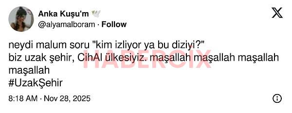 Uzak Şehir’in çok sevilmesiyle seyirciler, Albora Konağı ve Mardin’in dar sokaklarını gezebilmek için şehre akın etmeye başladı. Mardin’in turizmini uçuran Uzak Şehir’in bu başarısına sosyal medyadan yorumlar gecikmedi.
