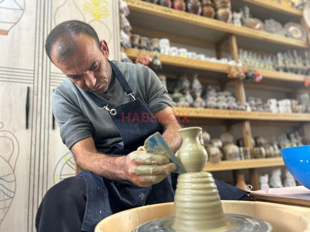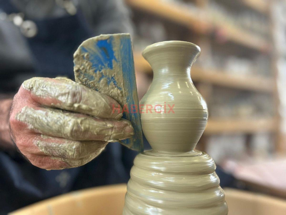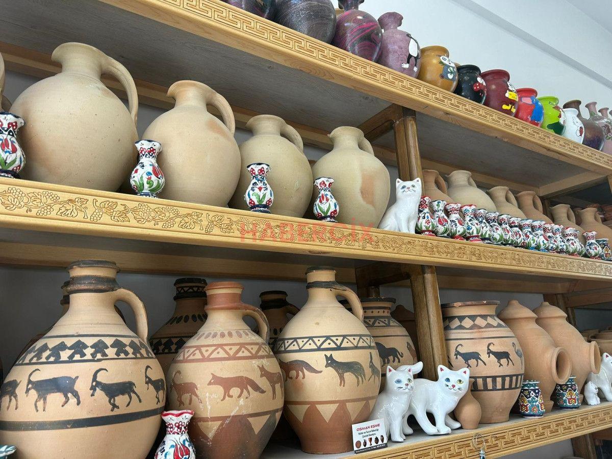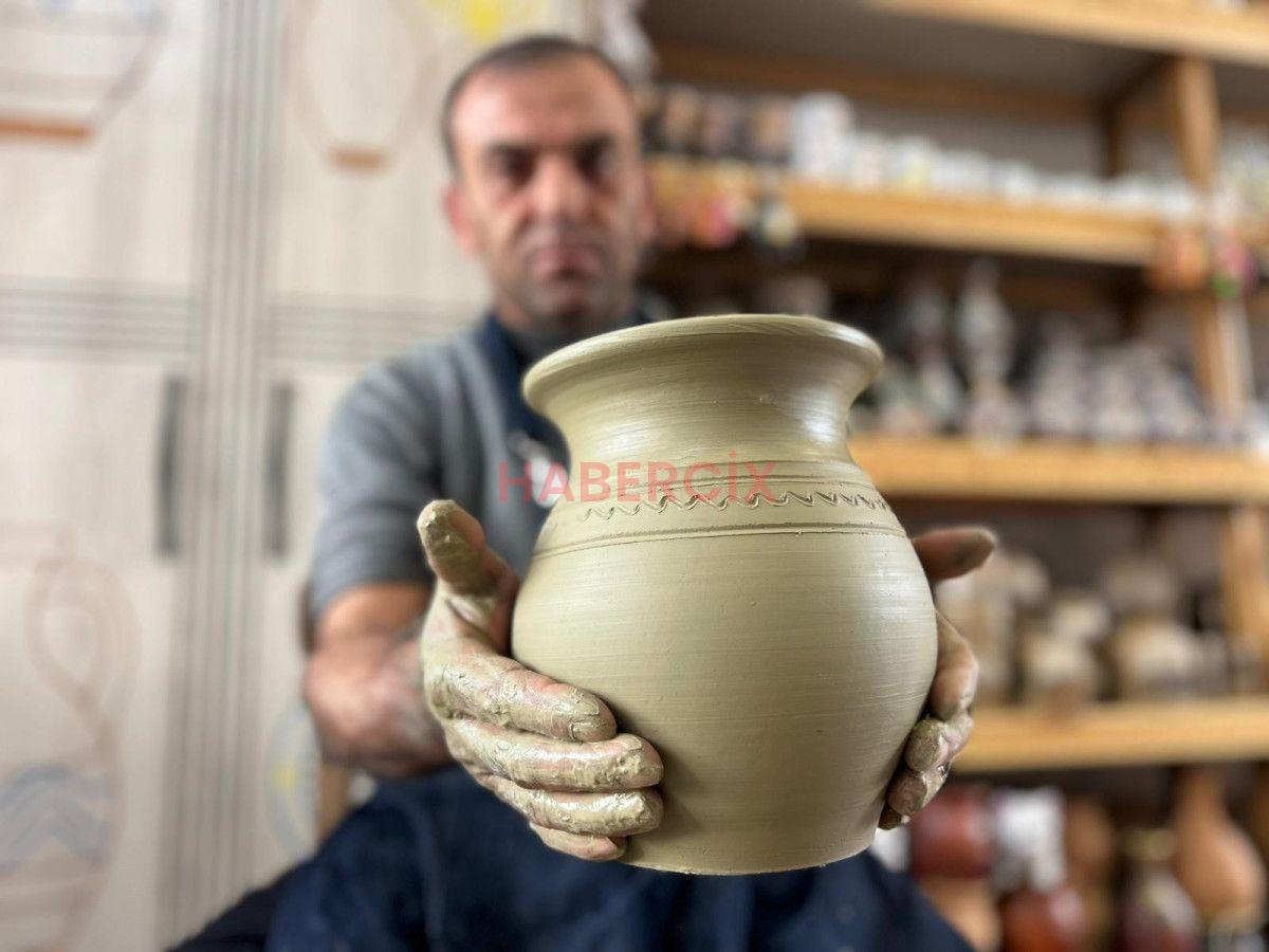 İHA muhabirine konuşan çömlek sanatkarı Osman Eşme, uzun müddettir tek usta olarak geleneği yaşatmanın eforunu verdiği belirtti.