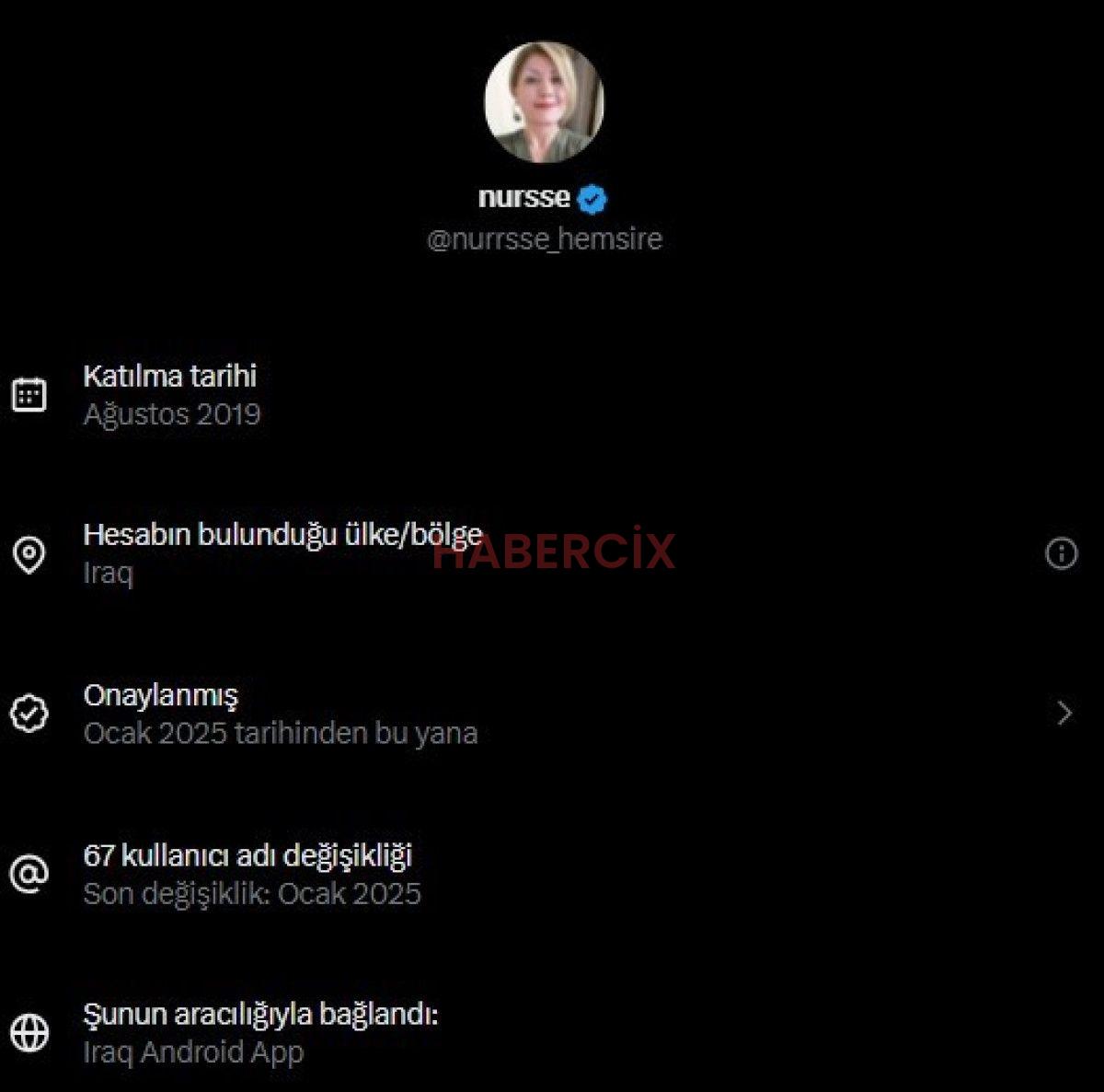 Atatürkçü içerikleriyle bilinen “Nursse” adlı kullanıcının son kullanım konumu Irak olarak görünüyor.