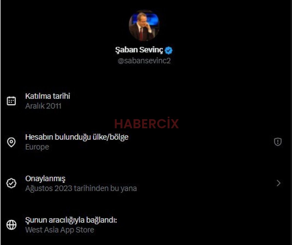 Bilgiler kısmında konumu “İstanbul” yazan “Şaban Sevinç” adlı hesabın yeni güncellemede son konumu Avrupa olarak yansıyor.