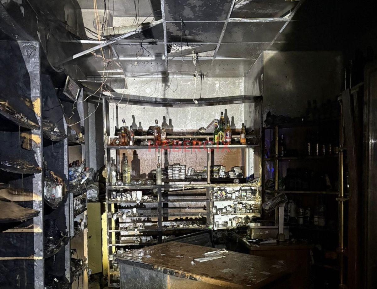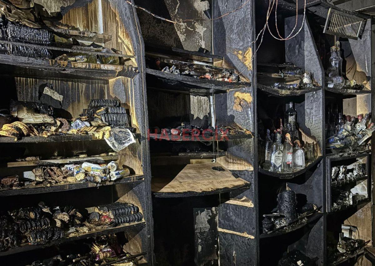 Alevler kısa müddette iş yerini sararken, çok ısınmadan kaynaklı birtakım alkol şişelerinde patlama meydana geldiği duyuldu.