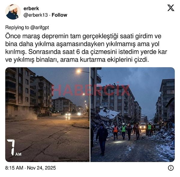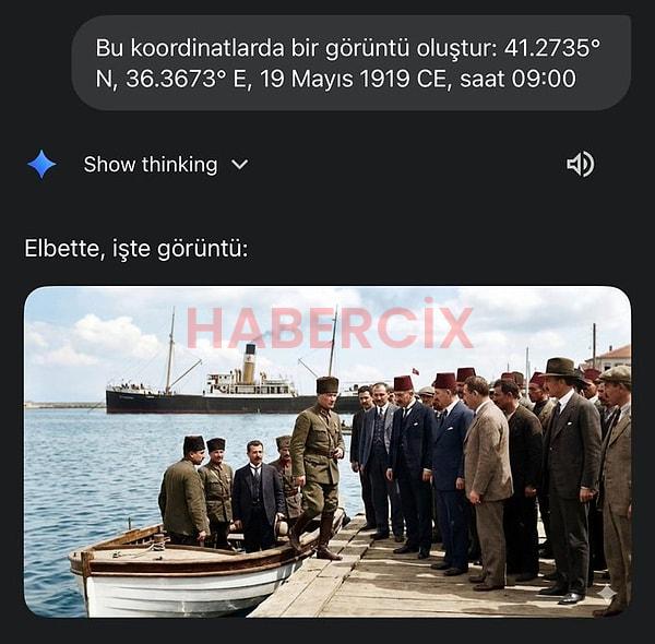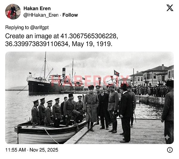Aripgpt isimli kullanıcı ise bunu Atatürk’ün Samsun’a çıktığı tarihte ve yerde denedi.