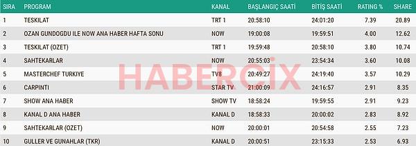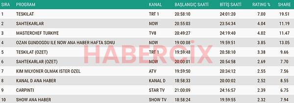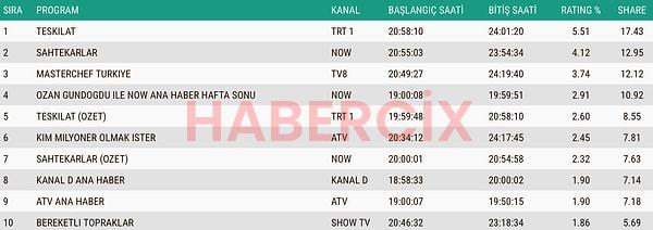 16 Kasım Pazar Total Reyting Sonuçları 👇