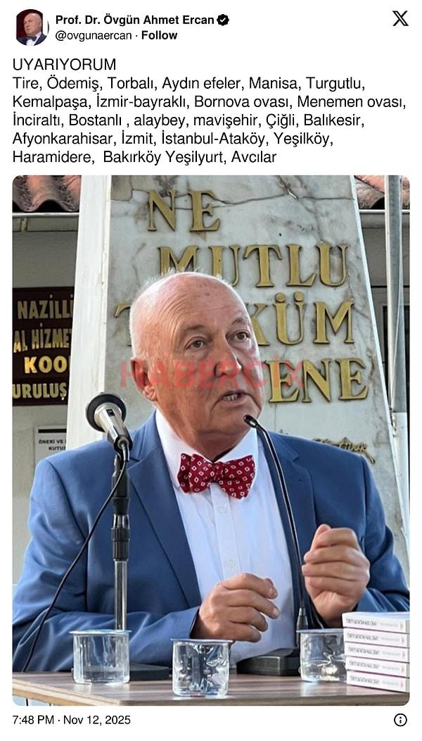 X hesabından paylaşım yapan Ahmet Ercan, şunları dedi: